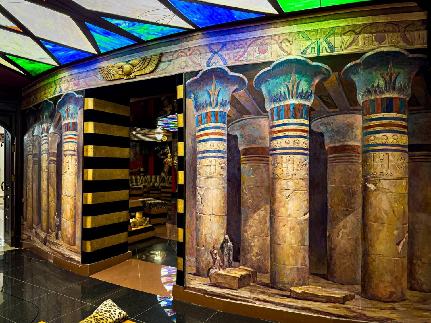 Golden tones, walls adorned with symbols, and an atmosphere that simultaneously promises tranquility and exoticism. This is a space for your special moments, where modern comfort and the aesthetics of the pharaohs’ era unite.